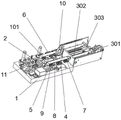 The feeding device 10 and the discharging device 11 refer to devices capable of bringing workpieces into the mounting seat 1 and bringing workpieces out of the mounting seat 1, respectively, and belong to the prior art, and therefore specific structures and working principles thereof are not further disclosed.