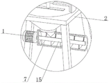 1. The utility model provides an asphalt modifier low temperature mixing device which characterized in that: comprises a support (2), a shell (6) arranged on the support (2), a stirring device arranged on the shell (6) and a material taking device, wherein the stirring device comprises a mounting rack (5) arranged on the top surface of the shell (6) and a first motor (4) fixedly connected to an outer side plate of the mounting rack (5), the top center of the shell (6) is rotatably connected with a rotating sleeve (13), both sides of an outer circular surface at one end of the rotating sleeve (13) positioned inside the shell (6) are fixedly connected with rotating frames (14), a plurality of first stirring rods (10) are uniformly and fixedly connected to the side plate at one end of the rotating frame (14) which is parallel to each other along the length direction of the side plate, a rotating shaft (11) rotatably connected to the top of the inner wall of the mounting rack (5) is movably sleeved in the rotating sleeve (13), a plurality of second stirring rods (16) are symmetrically and uniformly distributed along the axial direction of the rotating shaft are arranged on the outer circular surface of the rotating shaft (11), a first bevel gear (8) and a second bevel gear (9) are fixedly connected to one ends, located inside the mounting frame (5), of the rotating shaft (11) and the rotating sleeve (13), respectively, and a third bevel gear (12) meshed with the first bevel gear (8) and the second bevel gear (9) is fixedly connected to one end, located inside the mounting frame (5), of an output shaft of the first motor (4);