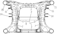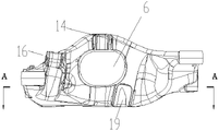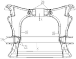The center of the front beam 2 is provided with a transmission avoiding hole 13, and two sides of the avoiding hole are provided with a rigidity supporting seat 20 in the inner cavity of the front beam 2. The transmission avoiding hole 13 is used for avoiding an output shaft of the motor, and a rigidity supporting seat is arranged for enhancing the bearing rigidity lifting requirement of the transmission avoiding hole.