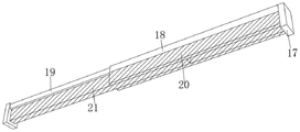 参照图3-图4,一种非标吸塑门板喷胶传送装置,还包括其中两个架体1的顶部通过螺栓固定有固定块17,其中一个固定块17的一侧通过螺栓固定有滑管18,另一个固定块17的一侧通过螺栓固定有滑杆19,滑杆19与滑管18插接,滑管18的底部粘接有第一毛刷20,滑杆19的底部粘接有第二毛刷21,当门板传送到第一毛刷20和第二毛刷21下方时,通过第一毛刷20和第二毛刷21与门板的摩擦,将门板表面的灰尘擦除。