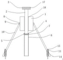 Referring to fig. 1-3, the top of the connecting rod 2 is provided with the handle 3, the outer wall of the handle 3 is provided with the anti-slip patterns 17 in a circle, the anti-slip patterns 17 can prevent hand slip when the handle 3 is rotated, the bottom of the sampling tube 6 is zigzag, the sampling tube 6 can be conveniently inserted into soil, the three groups of support frames 10 form a triangle on the ground after being opened, the triangle has stability, and the support frames 10 can be more stable after being opened.
