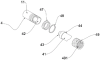 4、连接组件;41、对接管;42、锥形管;43、锥形头;44、卡接部;45、卡槽;46、密封垫一;47、压套;48、密封垫二;49、锁接头;491、卡合部;