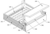 First sliding tray 201 has been seted up to water collecting bucket 104 inner wall, and the scraper blade 102 top is rotated and is connected with first apron 107, and first apron 107 lateral wall is rotated and is connected with first sliding block 203, and first sliding block 203 sliding connection is in first sliding tray 201 inner wall, and first apron 107 top is rotated and is connected with second apron 108.