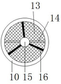所述三通管件10内部设有滤网13,所述滤网13靠近收集筒11的一侧设有电机二15,所述电机二15外壁通过支撑架16连接三通管件10,所述电机二15连接有刷杆14,所述刷杆14表面设有毛刷141。
