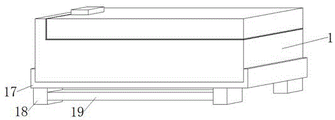 Preferably, the bottom fixedly connected with base 17 of device main part 1, base 17's bottom fixedly connected with fixed column 18, fixed column 18's right side fixedly connected with fixed plate 19, and fixed column 18 and fixed plate 19 are the rectangle, current device does not have base 17, uneven ground leads to the device bottom to suffer damage easily when putting the device as required, through setting up base 17, utilize base 17 to wrap up the device bottom, prevent that the device bottom from suffering damage, base 17 bottom is equipped with fixed column 18, utilize fixed column 18 to prop up the device, prevent that rivers from carrying out device inside, lead to the inside rust or unable use of device, fixed column 18 right side is equipped with fixed plate 19, utilize fixed plate 19 to fix both ends fixed column 18, prevent fixed column 18 distortion, through setting up base 17, the device protection nature is improved.
