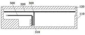 图中标识:100-盒体,110-底壳,120-顶盖;200-主电路板,210-变压器;300-副电路板,310-开关MOS管;400-第一导热部件,410-散热底壁,420-散热侧壁;500-第二导热部件;600-绝缘部件。