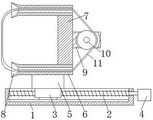 图中:1、底座;2、丝杠;3、移动副;4、电机;5、支撑座;6、直筒;7、连接支架;8、管口;9、安装块;10、导向轮;11、修磨钢丝线;12、通口;13、环形槽。
