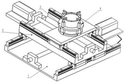 目前现有的盘类零件的工装夹具,能够将盘类零件进行固定装夹,但是装夹完成后,存在不易移动的缺陷,当根据加工工艺要求或检测要求,需要调整盘类零件的位置时,往往需要操作人员人工进行调整,例如:在检测盘类零件上压入的嵌套螺母的推出力时,现有的工装夹具固定在压力试验机底座上,盘类零件水平固定在工装夹具上,由于盘类零件上的多个不同的位置处均嵌套有螺母,所以每完成一个位置的嵌入螺母的推出力检测后,就需要操作人员将盘类零件松开,并对其进行位置调整,调整完成后再继续检测,直至完成全部检测工作,不仅降低了工作效率,提高了劳动强度,而且影响盘类零件的加工、检测精度。