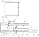 所述储料箱1的底部设有锥形连接器12,所述送料螺旋2与锥形连接器12相连通,所述锥形连接器12上设有排料口13,所述排料口13上插接设有门体14。