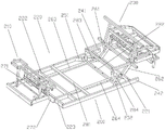 所述后端固定组件包括第一后端固定板261和第二后端固定板262,其中:所述第一后端固定板261的前端与所述第一横向支撑板221的后侧壁固定连接,且所述第一后端固定板261的后端与所述后端安装区框架230固定连接;所述第二后端固定板262的前端与所述第一横向支撑板221的后侧壁固定连接,且所述第二后端固定板262的后端与所述后端安装区框架230固定连接。
