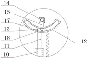 调节块13,所述的调节块13滑动嵌设在调节框12的中部;所述的调节框12的内侧壁上开设有弧形槽17,调节框12的侧壁上通过螺栓固定设置有弧形条18,弧形条18滑动嵌设在弧形槽17的内部;通过弧形槽17和弧形条18的配合滑动对调节块13在调节框12内的运动进行限位和导向,同时防止调节块13从调节框12的内部滑脱;