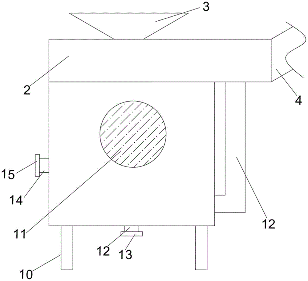 通过上述技术方案,通过进水斗向送料箱输水。Through the above technical scheme, water is delivered to the feeding box through the water inlet bucket.