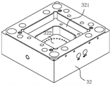 动模组件3,动模组件3设置分型面1下部,动模组件3包括动模板32和动模仁31,动模板32设有模仁开框321,动模仁31放置在模仁开框321处,模仁开框321底部设有凹槽322;