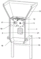 1、破碎箱;11、破碎轴;12、破碎齿;13、进料斗;14、固定框;15、支撑架;16、电机;17、间隔环;18、斜行挡板;19、出料漏斗;
