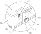 the reference signs are: 11, a bottom plate, 12, a side plate, 13, a panel, 131, a PVC film, 14, a honeycomb core plate, 21, a blind hole nut column, 22, a connecting sheet, 221, an arc-shaped elastic sheet, 23, a fastening screw, 231, an installation through hole, 222, a bayonet, 241, a threaded connecting column, 242, a bolt head, 243, a clamping column, 2431 and an annular groove.