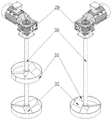 The liquid medicine preparation device further comprises an agitating mechanism arranged at the top of the box body 3, the agitating mechanism comprises agitating motors 29 respectively arranged above the preparation tank 18, the homogenizing and curing tank 19 and the storage tank 20, output shaft ends of the agitating motors 29 all extend into the corresponding tank bodies and are in transmission connection with an agitating part arranged inside the tank bodies, the agitating part comprises an agitating shaft 30, and at least one group of agitating paddles are arranged on the agitating shaft 30.