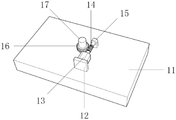 所述水平旋转组件(1)包括底架(11),所述底架(11)顶面的前侧固定安装有驱动架板(12),所述驱动架板(12)后侧的中部可拆卸安装有第一驱动装置(13),所述第一驱动装置(13)的中部可拆卸安装有蜗杆(14),所述蜗杆(14)的尾端活动安装有支撑块(15),所述蜗杆(14)中部的外表面啮合安装有蜗轮(16),所述蜗轮(16)的中部固定安装有转动柱(17)。