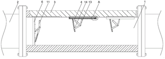 1.一种吸尘装置用便于更换的滤网结构,包括过滤器(1),其特征在于:所述过滤器(1)相对应的两端均通过法兰盘固定连接有风管(2),所述过滤器(1)的顶部安装有盖板(3),所述过滤器(1)内部相对应的两侧分别转动连接有多个第一支架(4)和多个第二支架(5),多个第一支架(4)和多个第二支架(5)之间均转动连接有过滤架(6),所述过滤架(6)的内部安装有过滤网(7),所述过滤器(1)的内壁安装有多个第一电机(8),多个所述第一电机(8)的输出端分别与多个第一支架(4)的一端固定连接,所述过滤架(6)的一侧开设有多个通风槽(9),多个所述通风槽(9)的内部均转动连接有挡板(10)。