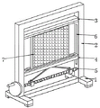 wherein, the second clamping structure 4 is movably arranged at the inner side of the supporting frame 2 and is arranged at the position right below the first rubber plate 32; the second clamping structure 4 comprises a cross-shaped clamping plate 41 and a second rubber plate 42 fixedly arranged at the top of the cross-shaped clamping plate 41; the first rubber sheet 32 and the second rubber sheet 42 are movably in contact with the top and bottom positions of the electronic information screen 7, respectively. The electronic information screen 7 in this embodiment can be used as a display panel for electronic information, and can be externally connected to a terminal, i.e., a host, to achieve uploading and imaging of electronic information data.