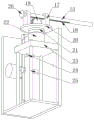 如图5所示,移动板23的下端连接有推板24,推板24的侧面连接有皮带30,皮带30的内部连接有多个转动杆29,转动杆29的一端连接有连接杆28,连接杆28的一端连接在箱体8的内部侧面,皮带30的侧面设置有第二齿痕31,第二齿痕31的侧面连接有第二齿轮32,第二齿轮32的中间连接有第三电机33,第三电机33连接在箱体8的内部侧面,箱体8的一侧设置有滑动环13,滑动环13的内部移动连接有推杆11,推杆11的中间上端设置有卡槽14,推杆11的另一端连接有气缸10,气缸10固定在箱体8的侧面,移动板23用于上下移动拾取杆15。As shown in Figure 5, the lower end of moving