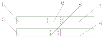 所述第一拼接母线6的两端的第一母线孔一61和第一母线孔二62分别与第一拼接孔11、第三拼接孔31相连接,所述第二拼接母线8的两端的第二母线孔一81和第二母线孔二82分别与第二拼接孔21、第四拼接孔41相连接。
