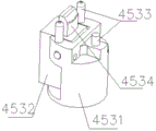 为使得基板更好地落入限位座453上,在配重块4532的顶端面上设置一个引入台4534,引入台4534的内壁面为向下倾斜的斜面结构。In order to make the base plate fall into the