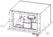 机壳41上设有透明观察窗411和进料口412,在进料口412的一侧设有一升降的挡门413。The