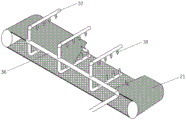 in addition, the booster pump 30 is connected with an external power supply and works, the booster pump 30 works to realize that water in the water storage tank 10 is filtered by the filter screen 34 and then is conveyed to the spray heads 38 to be sprayed out, and the upper spray head and the lower spray head 38 can wash ores on the mesh conveyer belt 21 from the top to the bottom and from the bottom to the top, so that the washing is more thorough and convenient to use.