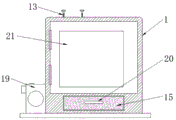 电动伸缩杆10远离第一安装块9一端固定连接有压块11,第二安装块12设置在第一安装块9的上方,第二安装块12的上端连接有调节杆13,且调节杆13远离安装箱1竖直中心线一侧设置有固定连接在第二安装块12上端的刻度杆14,磁石板16固定连接在收集盒15的内部下端面,磁石板16的左侧设置有固定连接在收集盒15内部的过滤网17,收集盒15的左端连接有固定安装在安装箱1内部的安装管18,且安装管18的左端连接有固定安装在安装箱1左侧的抽风机19,如图1和图3中所示,通过收集盒15滑动连接在安装箱1的内部下方位置,握住拉环20方便拉出收集盒15进行清理。