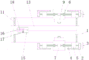 第一电机10的输出轴固定连接在往复丝杆11一端中心部位,所述往复丝杆11对称分布在安装底板1内左右两侧,可保证开启第一电机10时能够平稳带动往复丝杆11运转。