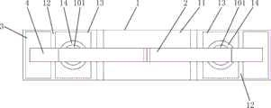 如图1、图2所示,这种用于预防造口旁疝的造口腹带,包括腹带本体1和加固绑带2;腹带本体1的两端通过第一魔术贴3连接,腹带本体1上开设有至少一个造口通孔101;加固绑带2设置在腹带本体1的外侧,且加固绑带2的长度方向与腹带本体1的长度方向一致,加固绑带2的中段缝接在腹带本体1中段的外侧面上,加固绑带2的两端通过第二魔术贴4连接。