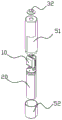 In some embodiments, the upper bottom surface of the first housing 51 is provided with a first pole cap mounting portion 54, and the lower bottom surface of the second housing 52 is provided with a second pole cap mounting portion 55. The first polar cap 32 is a disc-shaped with a convex middle part, and the second polar cap 33 is a cylinder with a hollow upper end opening 53. The first pole cap 32 is upwardly protruded and is abutted against the edge of the first pole cap mounting part 54, the opening 53 of the second pole cap 33 is upwardly protruded, and the bottom surface is clamped against the edge of the second pole cap mounting part 55. Thus, the lithium battery cell 20 is fixed in the shell 50 without affecting the function thereof.