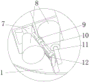 刮板22下方有齿圈,反转齿轮21转动时带动齿圈与滑动底座19向相反方向转动,刮板22一侧紧贴搅拌罐1内壁下方转动,刮除附着的粉尘结块,提高搅拌效率。