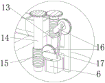 所述传动轴13传动连接有搅拌轴14,传动轴13与搅拌轴14相连的齿轮较厚,搅拌轴14下方螺栓固定于蜗杆15,蜗杆15一端传动连接于升降齿轮16,升降齿轮16一端转动连接有连杆17,当传动轴13一侧的升降齿轮16转动时,会通过连杆17带动另一个升降齿轮16带动搅拌轴14上下滑动,因齿轮较厚,因此可以在上下移动时依旧自身旋转,对搅拌罐1内不同高度进行搅拌,提高搅拌效率;