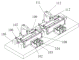 In the figure: 101. a working platform; 102. a fixing plate; 103. a fixing clamp; 104. a first fixing groove; 105. fixing the square blocks; 106. a first control knob; 107. a first mounting plate; 108. a second mounting plate; 109. a third mounting plate; 110. an electric push rod I; 111. an electric push rod I; 112. a rotating end; 113. a heating plate; 114. an extension plate; 115. installing a first screw hole; 116. a second mounting groove; 117. and (5) processing the head.