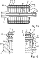 - 16 ausschnittsweise eine schematische und geschnittene Seitenansicht des Rotors gemäß 15;