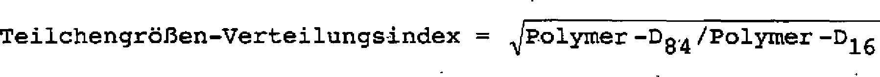 einen Teilchengrößen-Verteilungsindex, bestimmt durch die folgende Formel, von 1,1 bis 2,0,