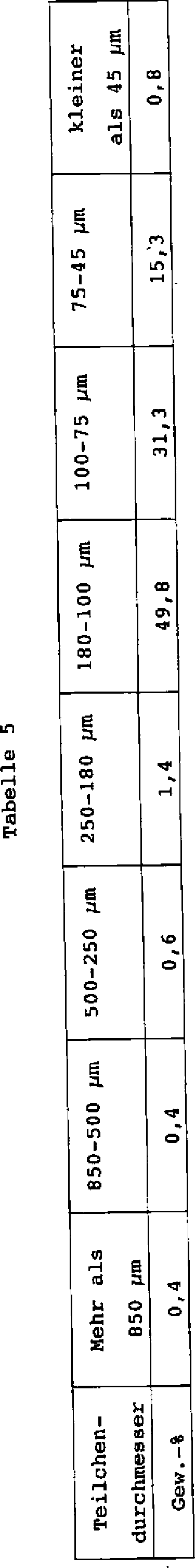 Die Ergebnisse sind in Tabelle 6 aufgeführt. Die Teilchengrößenverteilung des pulverförmigen Polymers ist in Tabelle 5 aufgeführt.