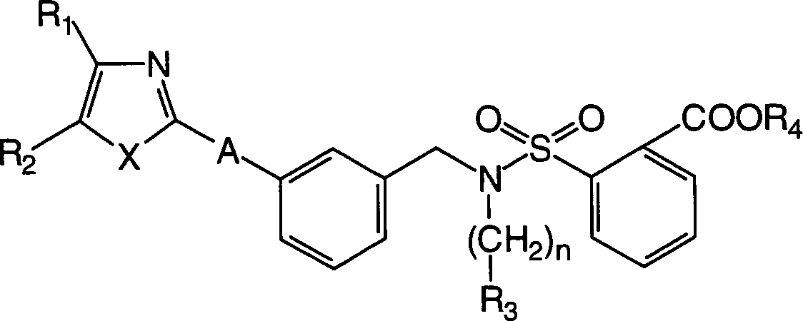 • 2-Sulfamoylbenzoesäurederivate, die eine antagonistische Wirkung sowohl auf den Leukotrien D4 (nachstehend einfach als LTD4 bezeichnet)-Rezeptor als auch den Thromboxan A2 (nachstehend einfach als TXA2 bezeichnet)-Rezeptor haben, Zwischenstufen für ihre Synthese und ihre Salze und Arzneimittel, die diese enthalten.