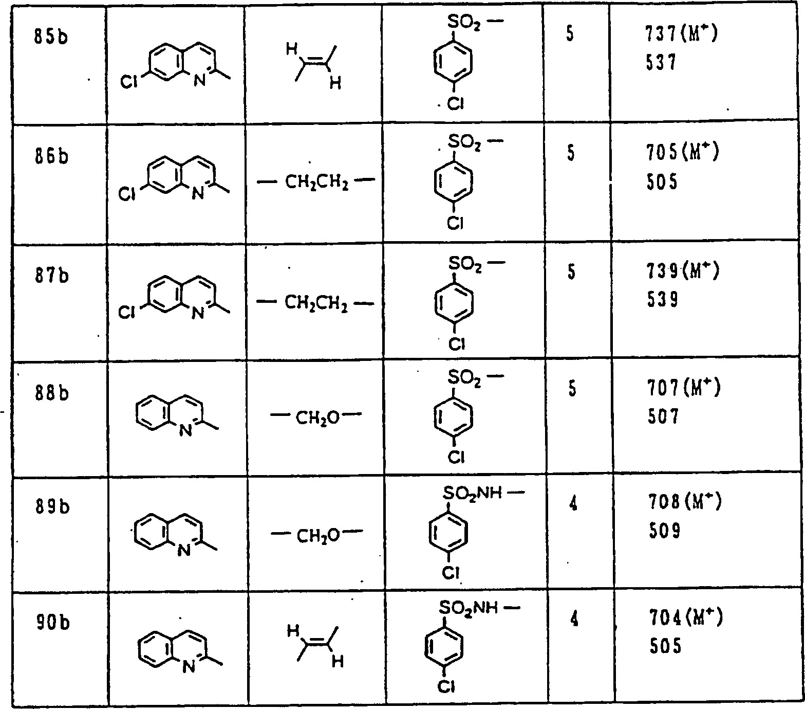 • Verbindungen, die antagonistische Wirkungen auf die Rezeptoren für beide der zwei Mediatoren, LTD4 und TXA2, aufweisen, werden in JP-A-3-258759, JP-A-4-154757, JP-A-4-154766, JP-A-5-262736, JP-A-5-279336, JP-A-6-41051 und WO 96/11916 offenbart. Diese Verbindungen sind strukturell verschieden von den erfindungsgemässen Verbindungen und es wird nicht erwartet, dass sie ausreichende therapeutische Wirkungen als antiallergische Mittel im Hinblick auf die Intensitäten ihrer antagonistischen Wirkungen auf die Rezeptoren für den bedeutenden bronchokonstriktorischen Mediator LTD4 und die Verhältnisse ihrer antagonistischen Aktivitäten gegen die zwei Mediatoren LTD4 und TXA2 aufweisen.