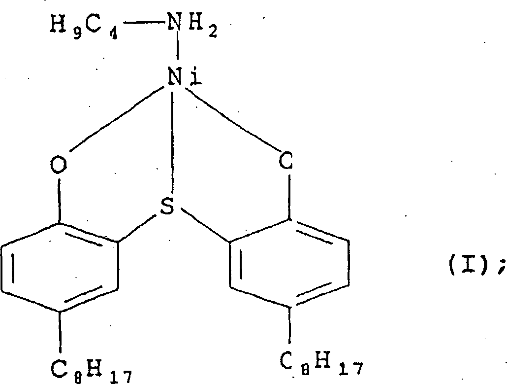 • (a) einen Nickel-Löscher, der [2,2'-Thiobis(4-t-octyl-phenolat)-n-butylamin-Nickel(II)] mit der Formel (I) entspricht: