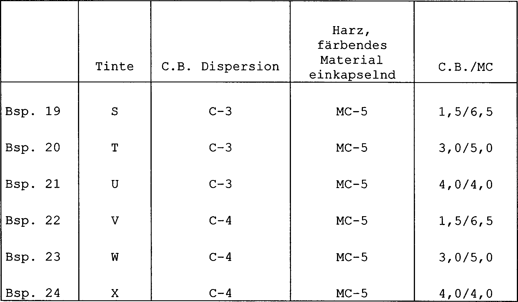 wie in Beispielen 13 bis 18. Kein Ausschwitzen in den farbigen Hintergrund