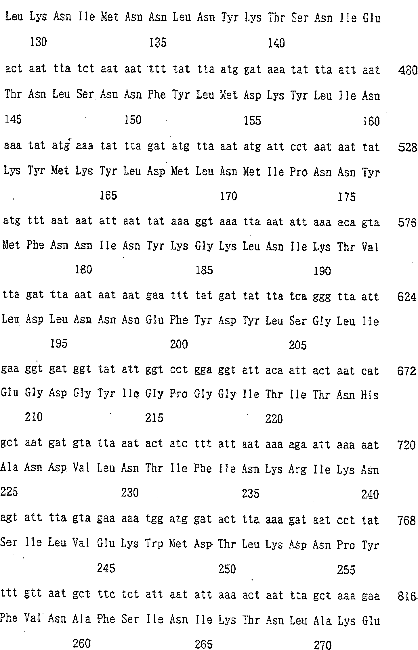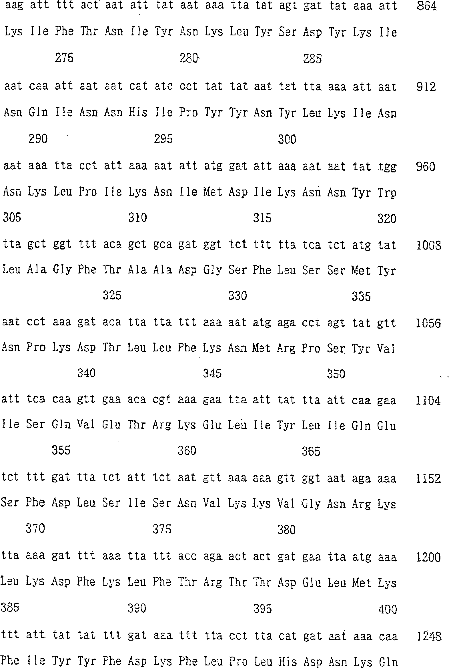 der Nucleotidsequenz: GCCCAGACATATCCCTGAATGATACC, wobei das Protein