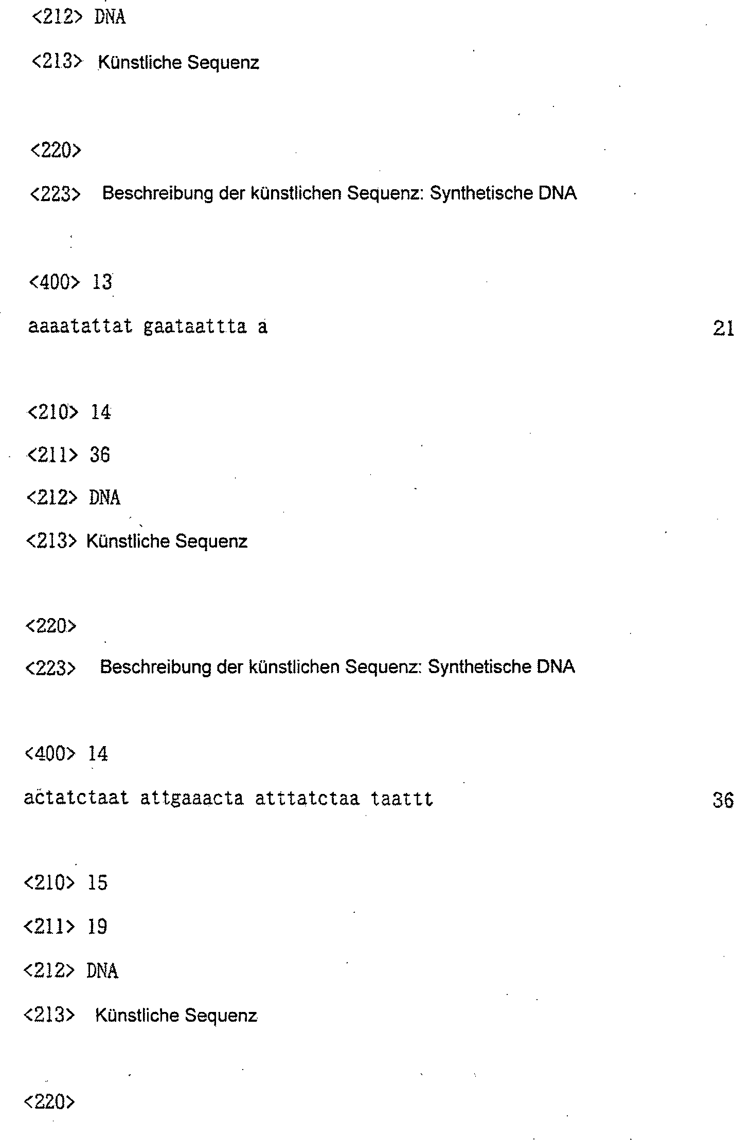 wobei die DNA innerhalb der Sequenz aus 26 Nucleotiden: