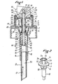 - the central member 36 is made integral with the piston holder 19; its splined hub 39 being placed in the bore 21 and its rod 54 - provided with the vertical groove 38 and the needle 37 - in the bore 23 of the tube 26.