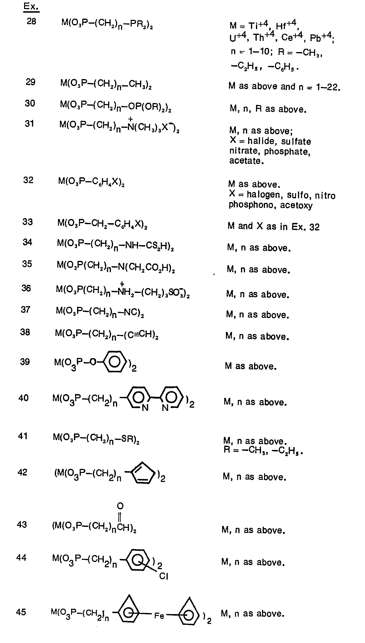 | US4487922A (en) | Layered organophosphorous inorganic polymers containing cyclic groups |