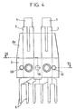 - Fig. 2 shows the stacking block seen in profile. It includes, for example two columns of two rows of blades 3, 4, 5 or four RT contacts.