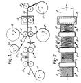 - a composite metal/plastic foil or a laminate 2 consisting of a raw material metal foil 3 laminated to a somewhat wider insulation film 4 as illustrated in Fig. 2, in which the apparatus of Fig. 1 is schematically illustrated and some of the machine parts have been removed for clarification.