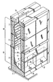 - the walls of the cells are made up, in a manner known per se, of insulating blocks 2 on the inner face of which electrical resistors 3 are arranged, suspended as shown in the figure or incorporated in the insulating blocks .