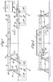 - Eine andere Ausgestaltung der Erfindung zeichnet sich dadurch aus, daß die Spann- und Verriegelungseinrichtung mindestens einen hydraulischen Spannzylinder enthält, an dessen Kolbenstange ein Druckstück mit einer an die Querschnittsform des Längsholm-Endes angepaßten Aufnahme befestigt ist. Nachdem der Ständer in seine Betriebsstellung A bewegt worden ist, wird der Längsholm durch Betätigen dieses hydraulischen Spannzylinders zwischen dem Druckstück und einem am Ständer vorgesehenen festen Gegenhalter eingespannt. Eine stabile seitliche Halterung läßt sich zweckmäßig dadurch erzielen, daß dieser Spannzylinder in der jeweils äußeren Stütze jedes Ständers vorgesehen ist und daß am freien Ende der inneren Stütze des jeweiligen Ständers eine profilierte Laufrolle den Längsholm unterfaßt und seine seitlichen Bewegungen verhindert.